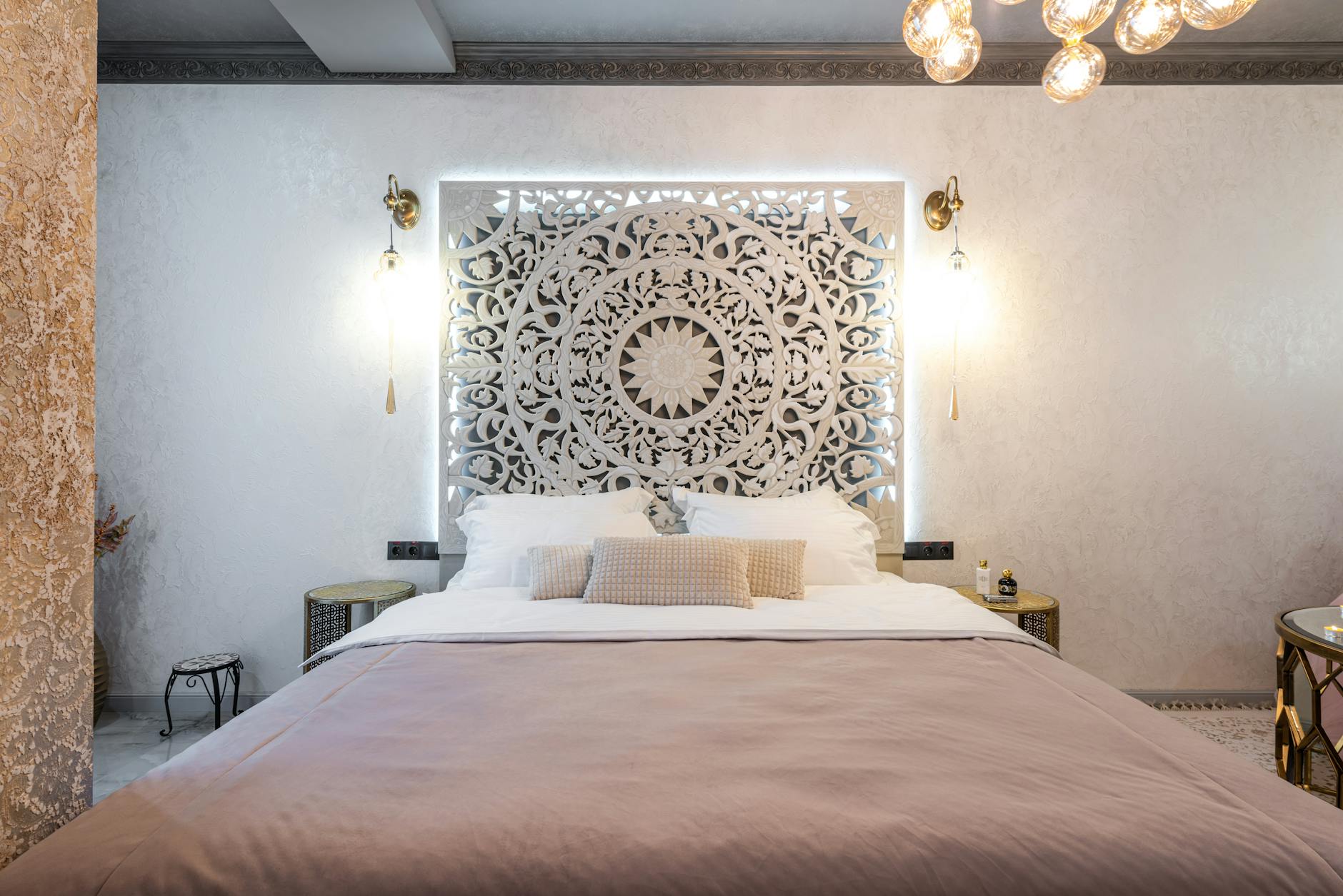 Ein 30–40 mm Kopfteil-Panel hinter dem Bett reduziert Hitzepeaks im Sommer und mildert kalte Wandabstrahlung im Winter. Kombiniert mit Lehmoberfläche ergibt sich zusätzlich Feuchtepufferung – ideal gegen morgendliche Kondensatbildung an Außenwänden.